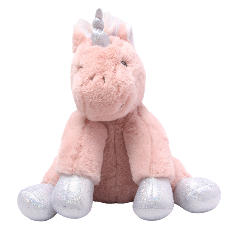 This cute plush toy is super soft and destined to become a child's favourite toy for years to come. Featuring a gorgeous rainbow tail and mane and glitter fabric feet & horn.