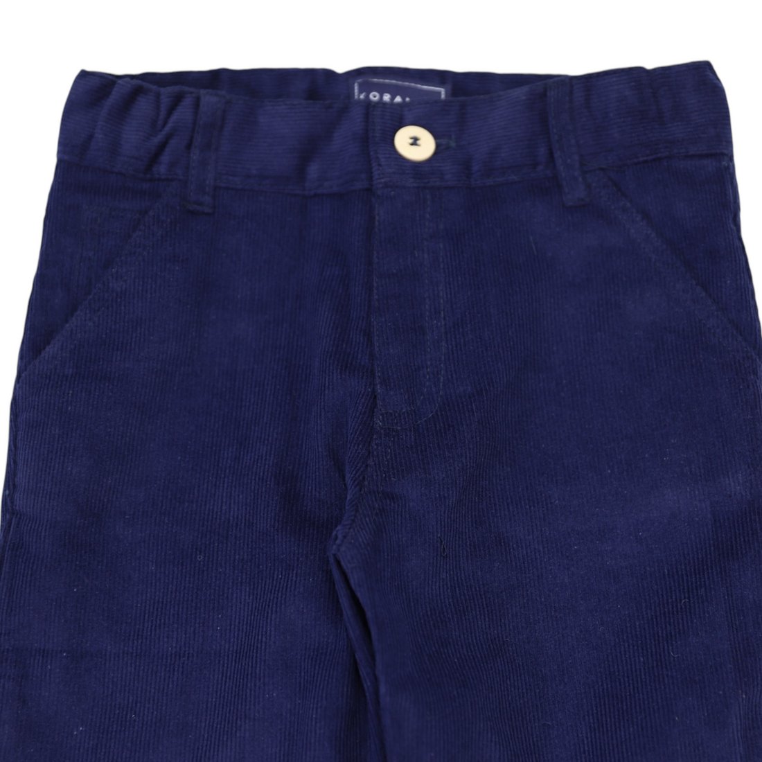 Add a touch of charm to your little one's wardrobe with Korango's Cord Pant in Navy! Made from soft navy cord, these pants feature an adjustable waist for comfort and handy pockets for tiny treasures. Perfect for stylish kids, they're an elevated staple that pairs effortlessly with any outfit.