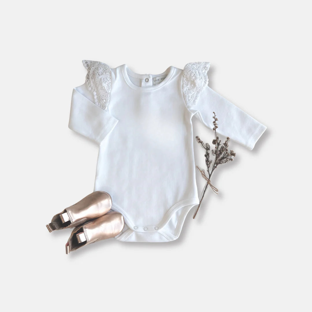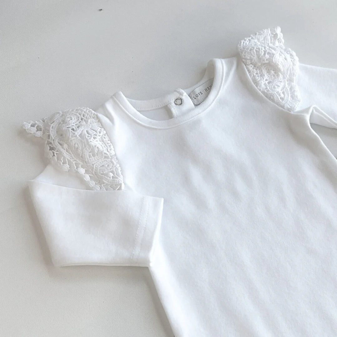 LOVE HENRY BABY GIRL LACE SLEEVE ROMPER WHITE