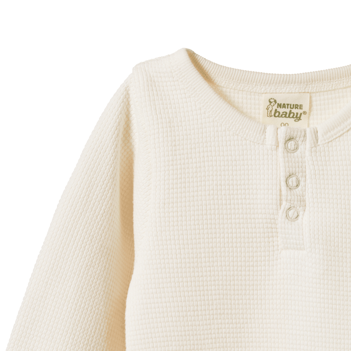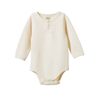 NATURE BABY HENLEY LONG SLEEVE BODYSUIT WAFFLE NATURAL