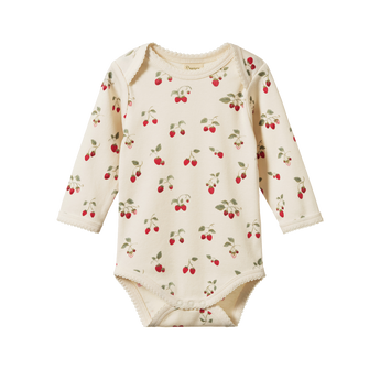 NATURE BABY LONG SLEEVE BODYSUIT STRAWBERRY BLUSH PRINT