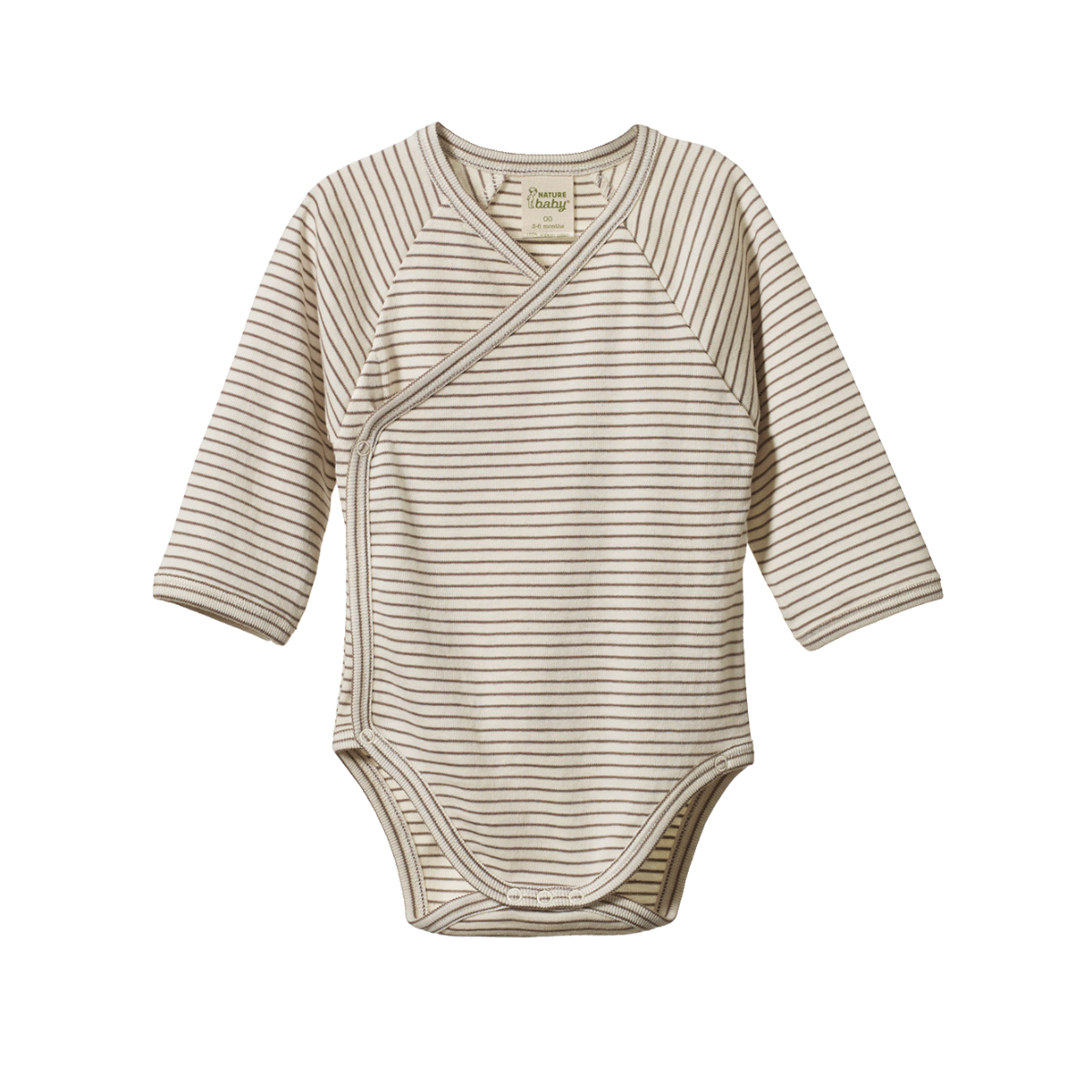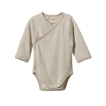 NATURE BABY LONG SLEEVE KIMONO BODYSUIT MUSHROOM PINSTRIPE
