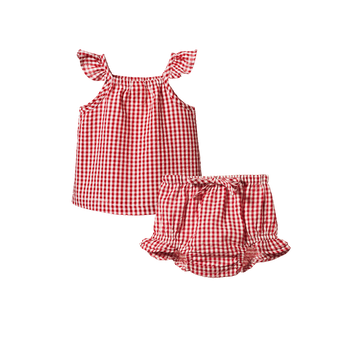 NATURE BABY PETAL SET GINGHAM TOP AND BLOOMERS RED CHECK