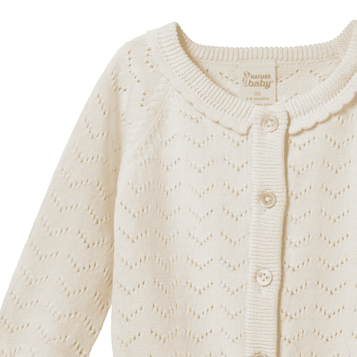 NATURE BABY PIPER CARDIGAN NATURAL POINTELLE