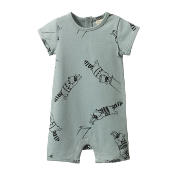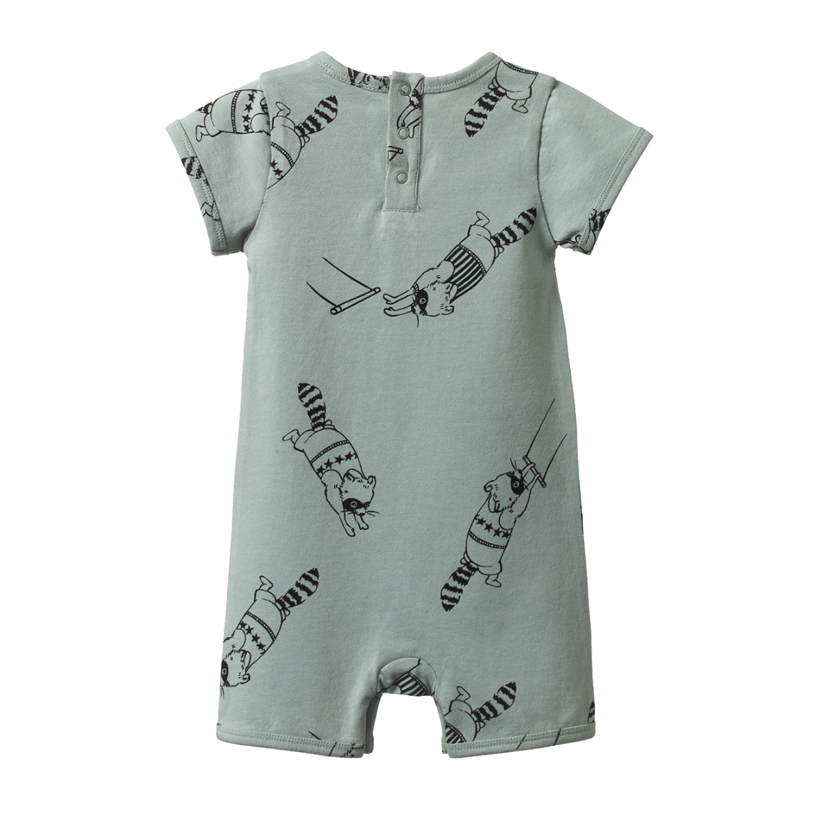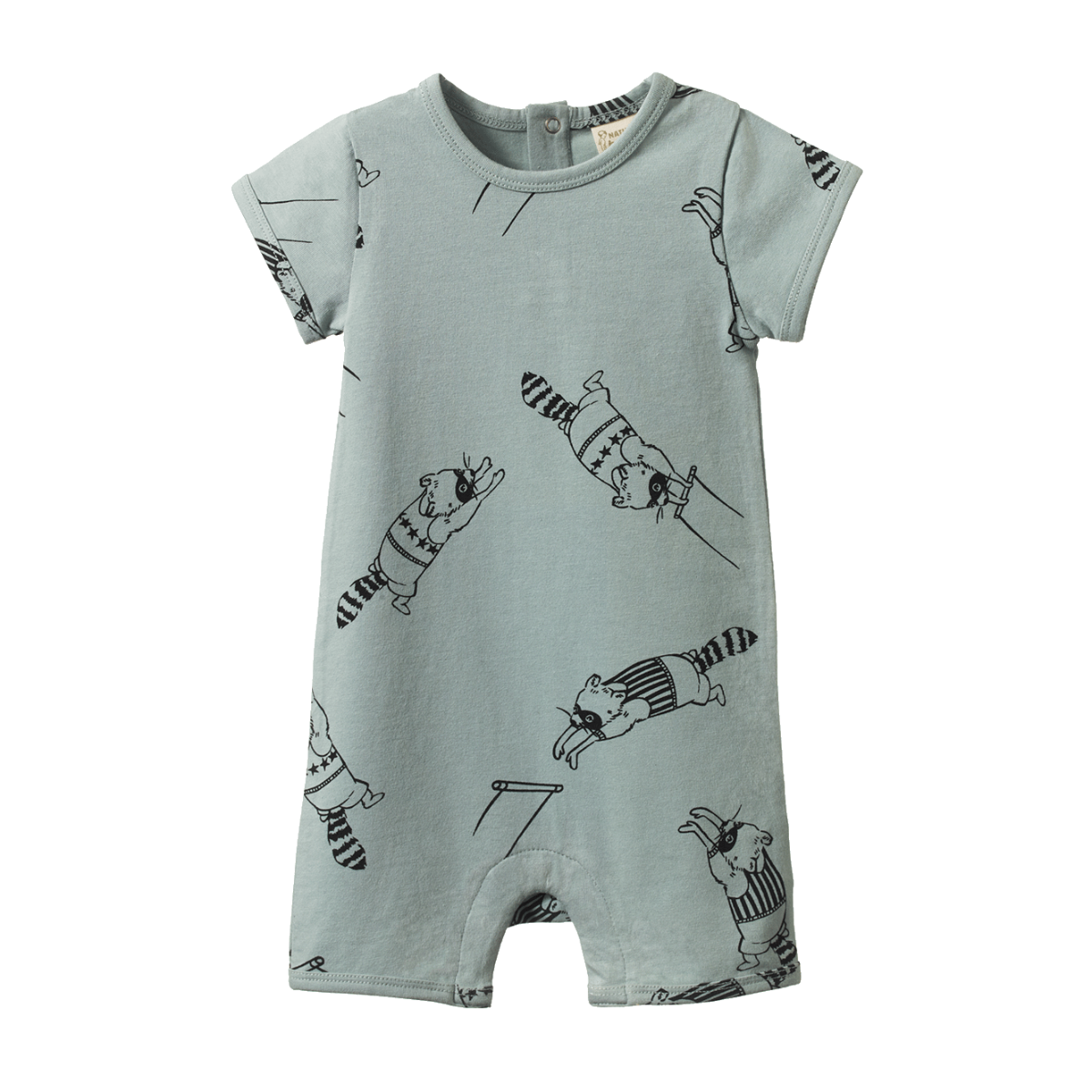 NATURE BABY SHORT SLEEVE QUINCY ROMPER RACCOON RHAPSODY