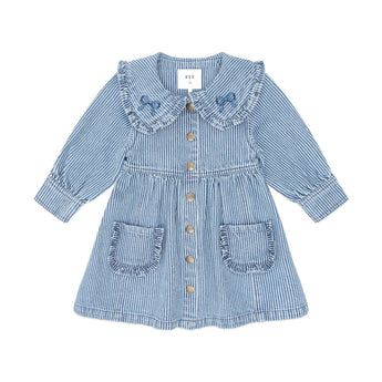 HUX VINTAGE BOW COLLAR DENIM DRESS BLUE STRIPE