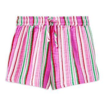 Milky Clothing Crinkle Stripe Short is a comfy, pull-on style perfect for summer days and festive fun. Made from 100% lightweight crinkle cotton, these shorts feature a bold vertical stripe in pink, red, and green, the perfect match with our Crinkle Stripe Shirt. With an elastic waistband for easy dressing and all-day comfort, they’re a must-have for everything from Christmas lunch to casual playdates.