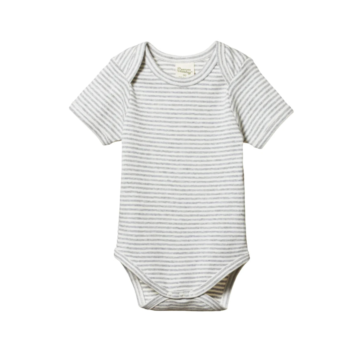NATURE BABY SHORT SLEEVE BODYSUIT GREY MARL STRIPE