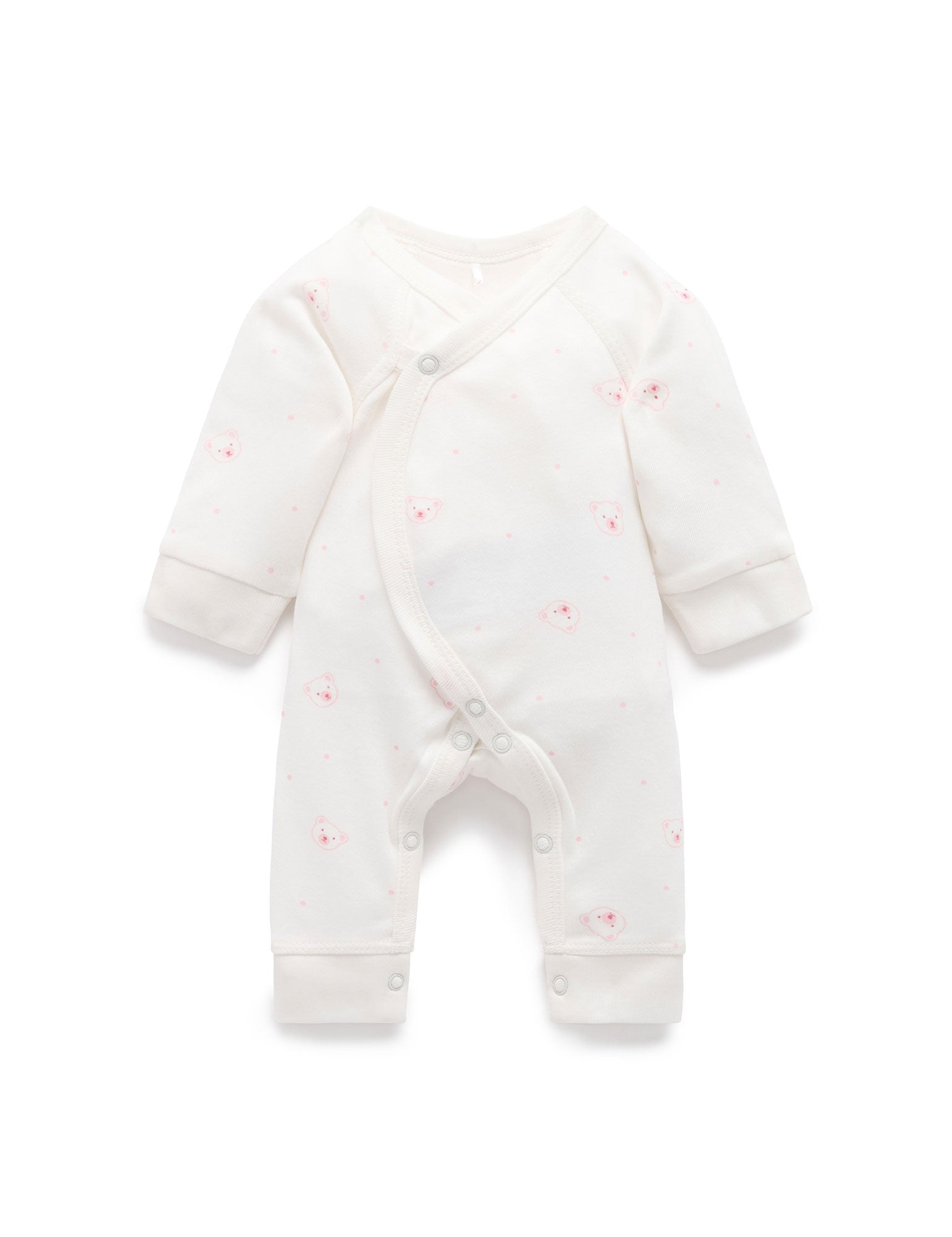 PUREBABY PREMI CROSSOVER LONG SLEEVE GROWSUIT PALE PINK BEAR