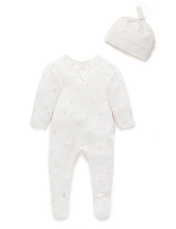 PUREBABY ZIP GROWSUIT & HAT SET VANILLA BEAR